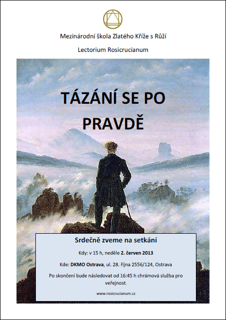 Srdečně zveme na setkání nad spirituálním tématem TÁZÁNÍ SE PO PRAVDĚ, které proběhne v neděli 2. června 2013 v 15 hodin v DKMO Ostrava na ul. 28. října 2556/124 v Ostravě. Po skončení setkání bude od 16:45 hodin následovat chrámová služba pro veřejnost.
